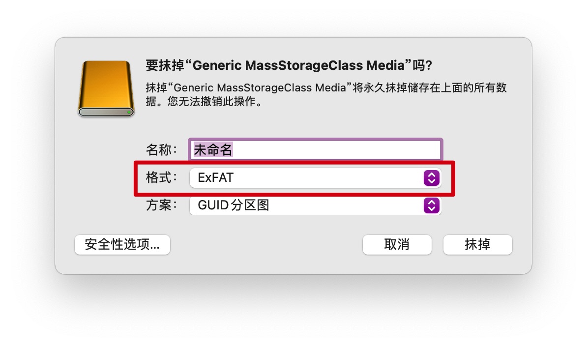例如在烧录的时候报了各种各样的错误的时候,可以先格式化一下 SD 卡,用 Mac 的磁盘工具格式化成 ExFAT 格式即可